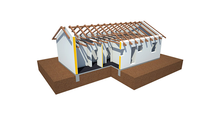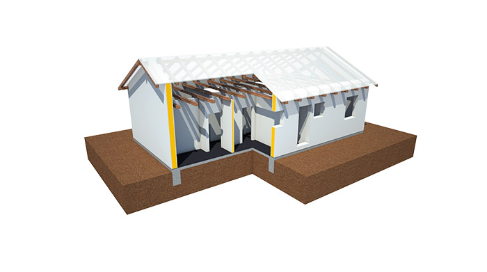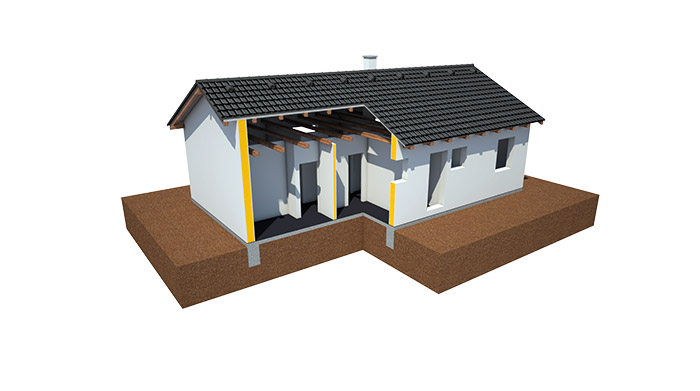 • Výroba a montáž svislých nosných a nenosných konstrukcí z KVH hranolů jednostranně opláštěných deskami fermacell